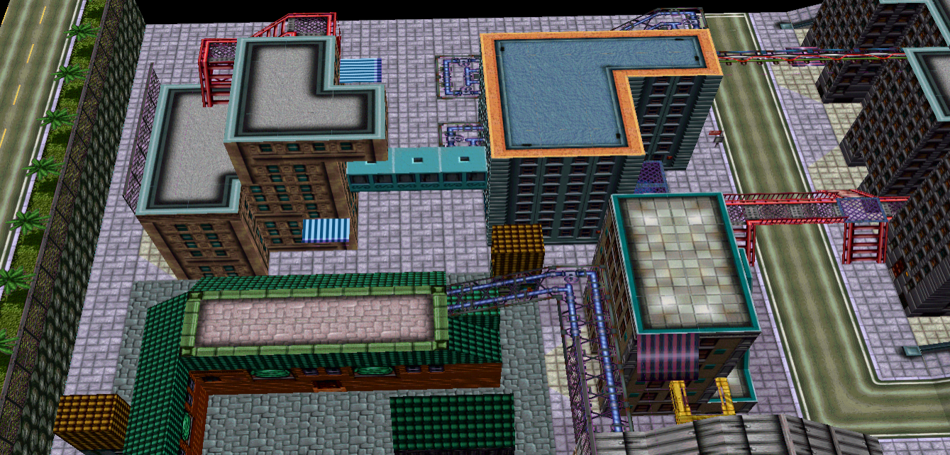 You'd be surprised how fast you can move through this level with the scripted runspeeds that are standard for the map. As well as all the shortcuts. I'm not designing it to play like GTA2 conventionally.