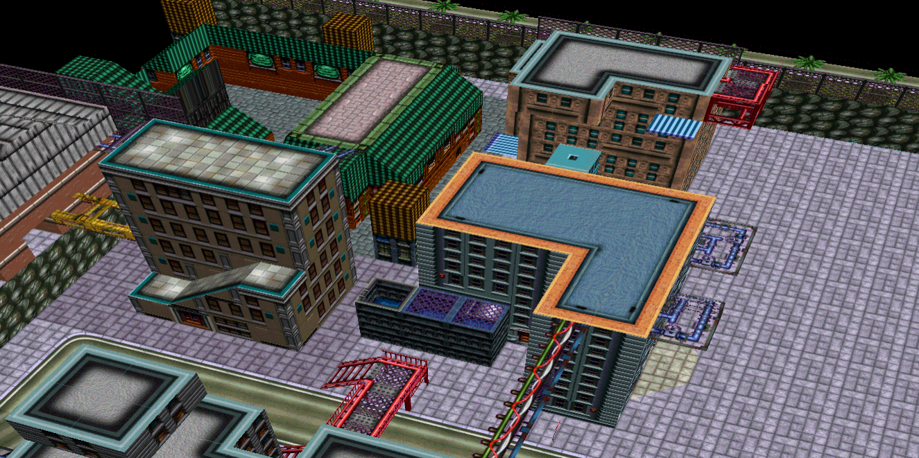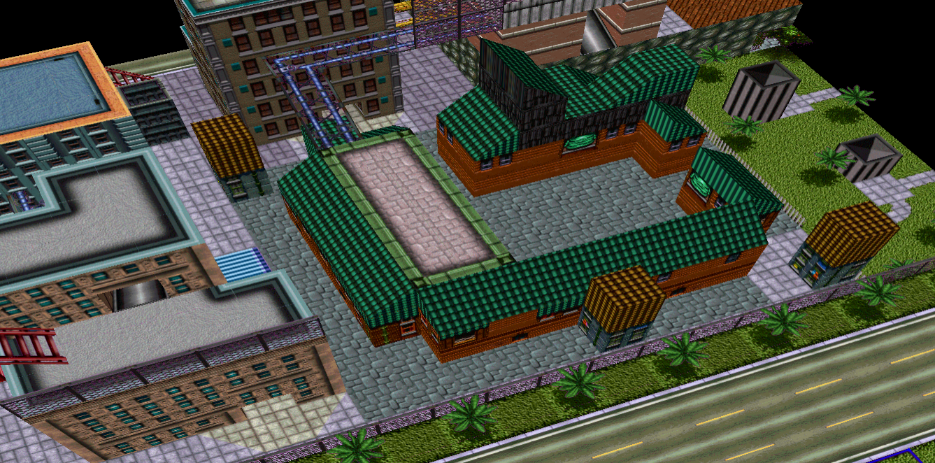 The level looks way too big for combat mostly on foot. But the architecture is a nice mix of GTA1 textures with GTA2 detailing. Similar style to my MultiSlayer island city for GTA2, which used the very non-GTA2 textures from GTA1 Vice City (aka Miami).