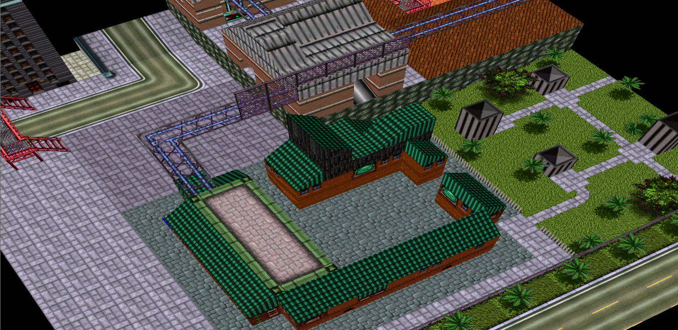 The level looks way too big for combat mostly on foot. But the architecture is a nice mix of GTA1 textures with GTA2 detailing. Similar style to my MultiSlayer island city for GTA2, which used the very non-GTA2 textures from GTA1 Vice City (aka Miami).