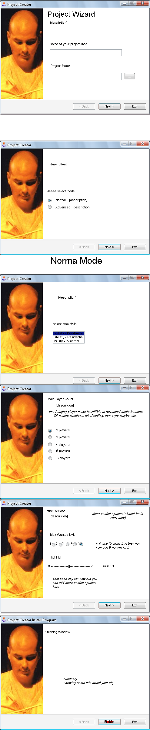 Example how I see that: In Advenced I would change a few things and add a few new usefull stuff for advenced mapmakers. But i have to think first (have some ideas: add to max players single player possitoion, add choose custom .sty to choose style window, advenced .extensions)