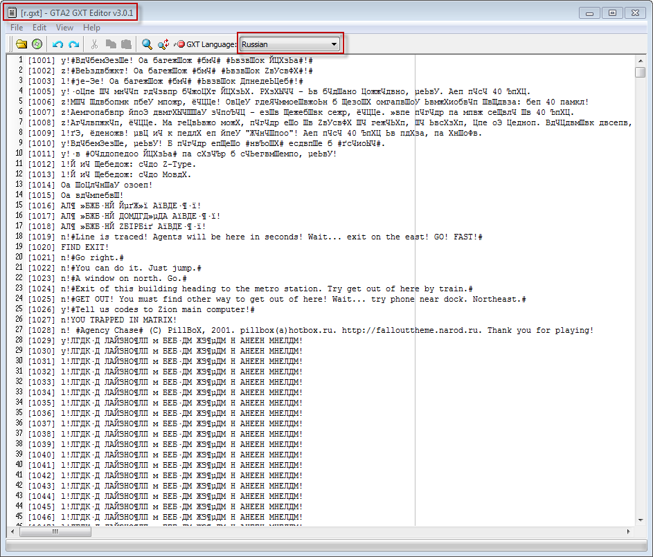 In the language list you added Japanese. I looked a bit around and saw that there must have been a Russian and maybe a Japanese GTA2 version. Shouldn't Russian have to be on the list then too? And are these language files available somewhere? They are not in the US/EU version that most of us have. Not that i am speaking Russian or Japanese, but it would be nice for completeness and the ability to test some things. For example with that special characters.