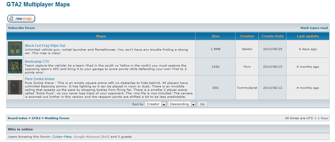 I made a static page with new looks. I got a bit lazy and used old layout. So, name map, preview, size, description, creator and create date.
