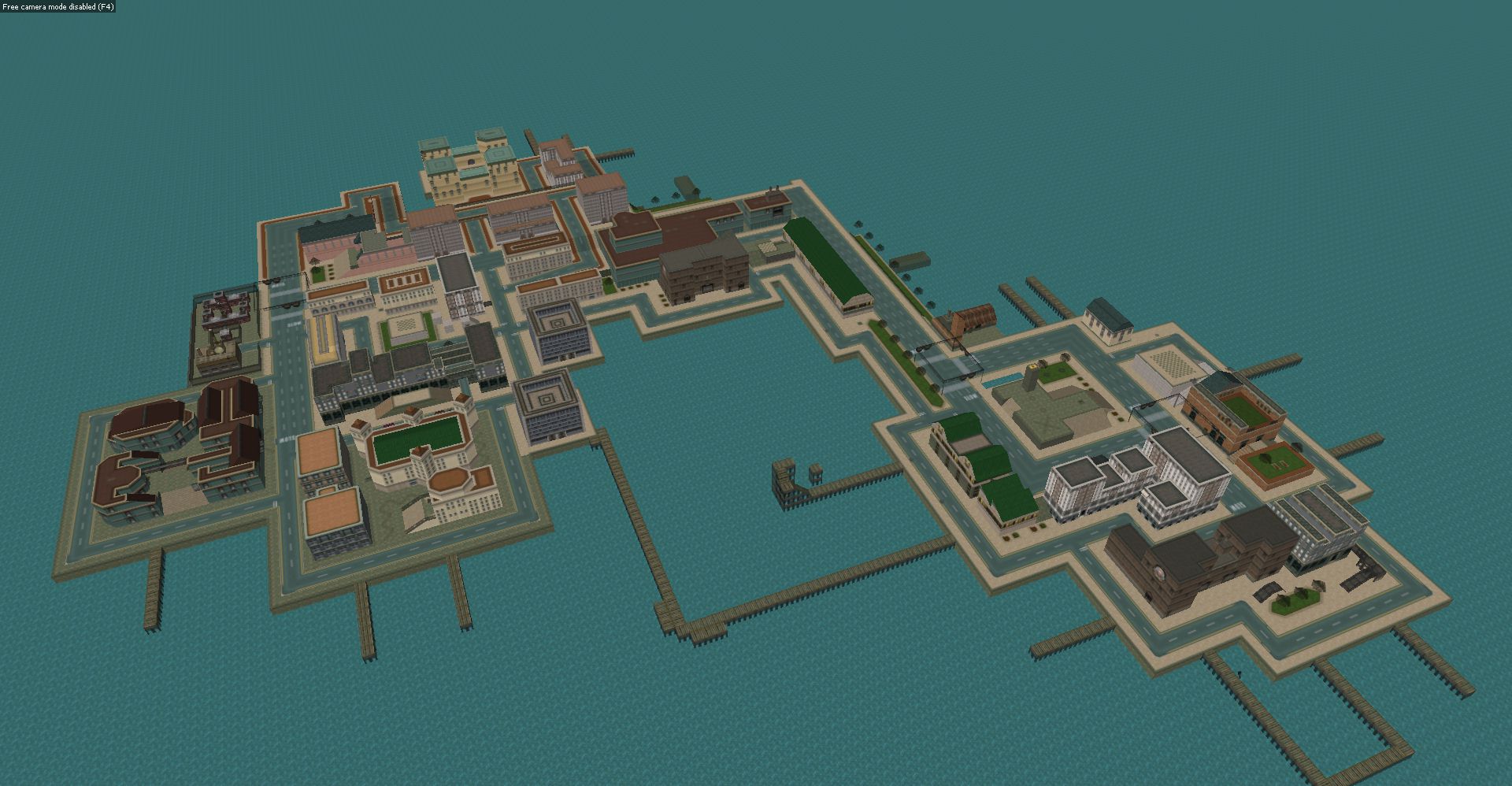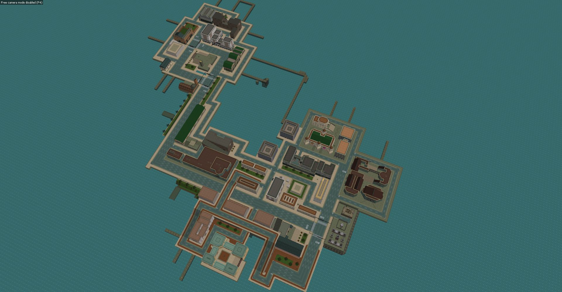 Map has lots of lights (maybe even too many) and 1-6 player support. Maximum wanted level is set to 3 for games involving 3 or less players. For 4 or more players Wanted level is set to 2. There are 8 different respawn points each with nearby weapon or powerup. Some cars also respawn. Not all features are visible. There are lots of traps, some shorcuts and few hints. This is my first and last map.