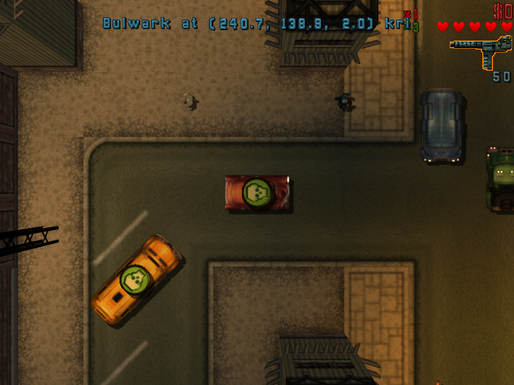Because the ID markers weren't set, & the bil.mis script creates three gang cars, they do not have the proper gang logo, causing them all to default to a spinning kill frenzy token on top of the car. You can't collect it, but it's fun to drive around killing people with it.