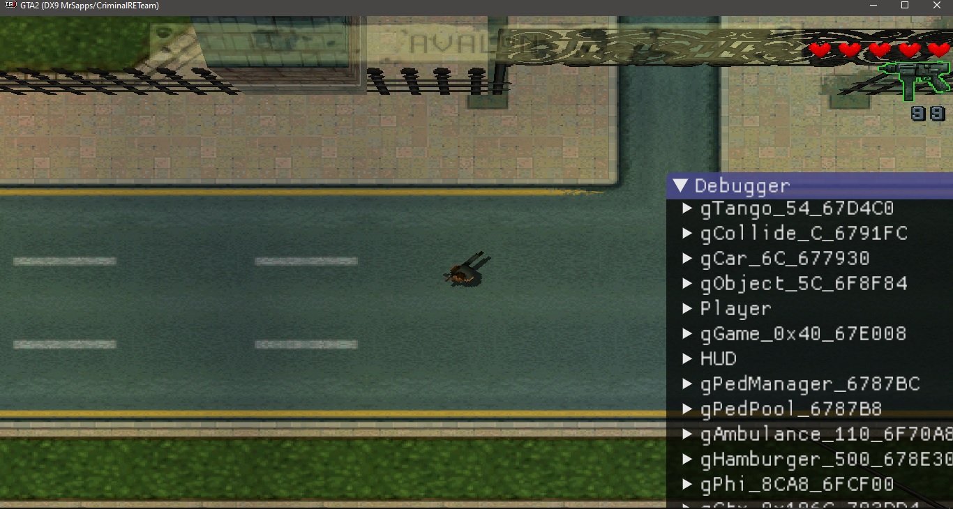 GTA2Hax: a reimplementation of d3ddll and DmaVideo.dll. It's the same project discussed on viewtopic.php?t=829 , but it's completed! This achievment means we are able to use ImGui inside GTA2 to help debug stuff, such as calling functions, changing fields and attributes in runtime etc.