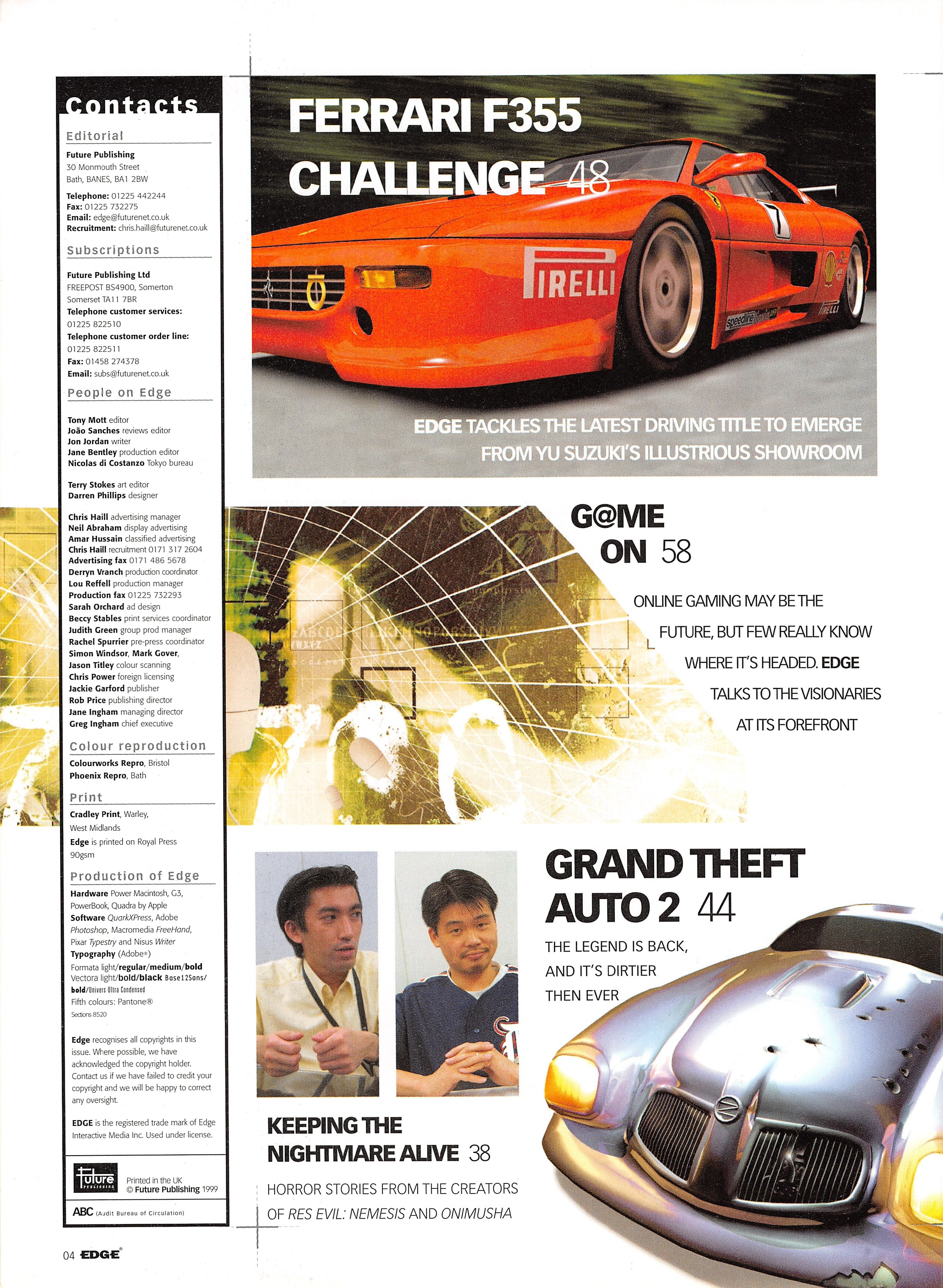 While browsing trough some old Polish GTA forums, I found an interesting article from the Edge magazine including screenshots from the beta version of the game (probably August 1999). The most significant difference between these screenshots and other pre-release media we've got so far is that the weapon preview is located at top-left instead of top-right part the screen and different weapon's sprites are used