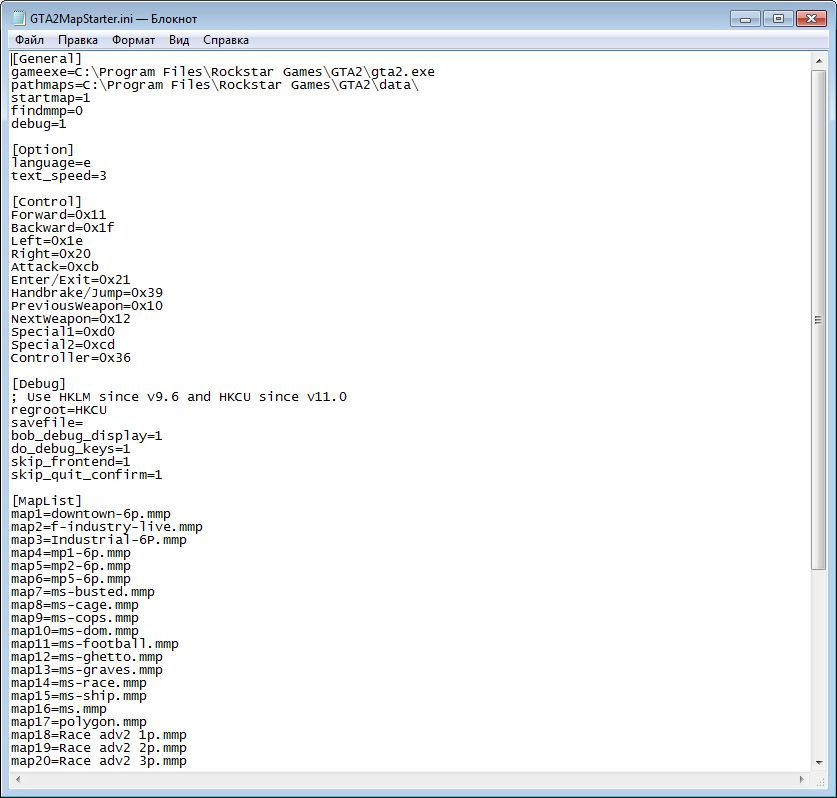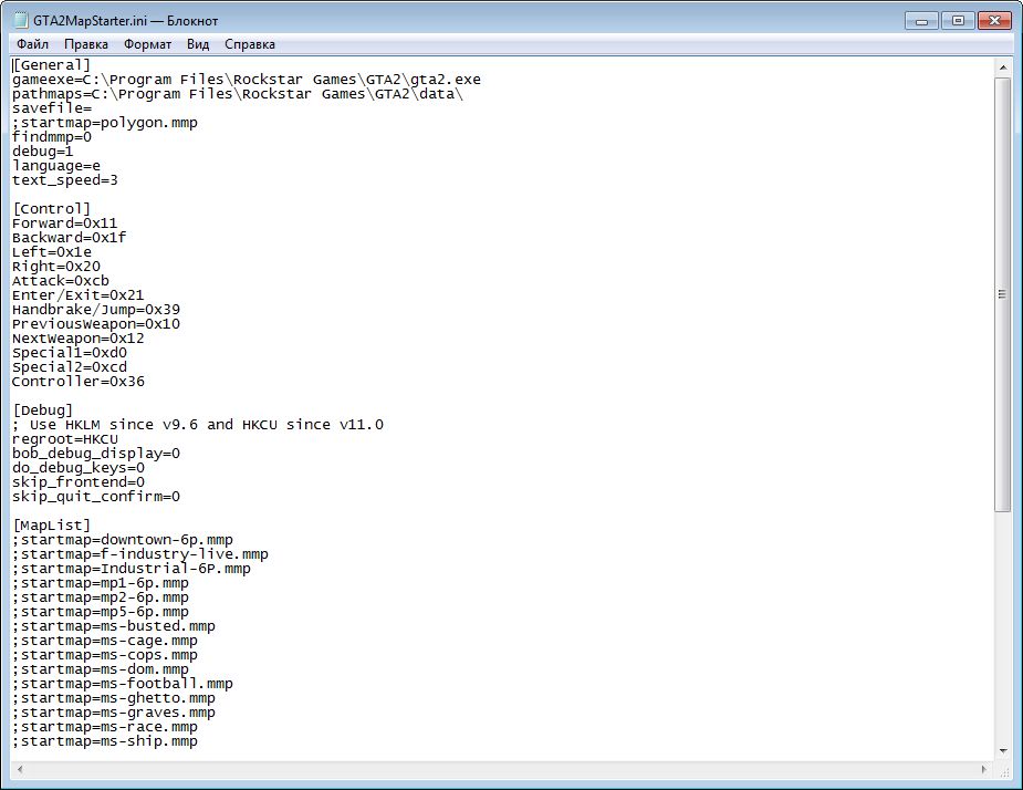 • [path\GTA2MapStarter.bat] [path\filename.mmp] - loading map in format *.MMP
