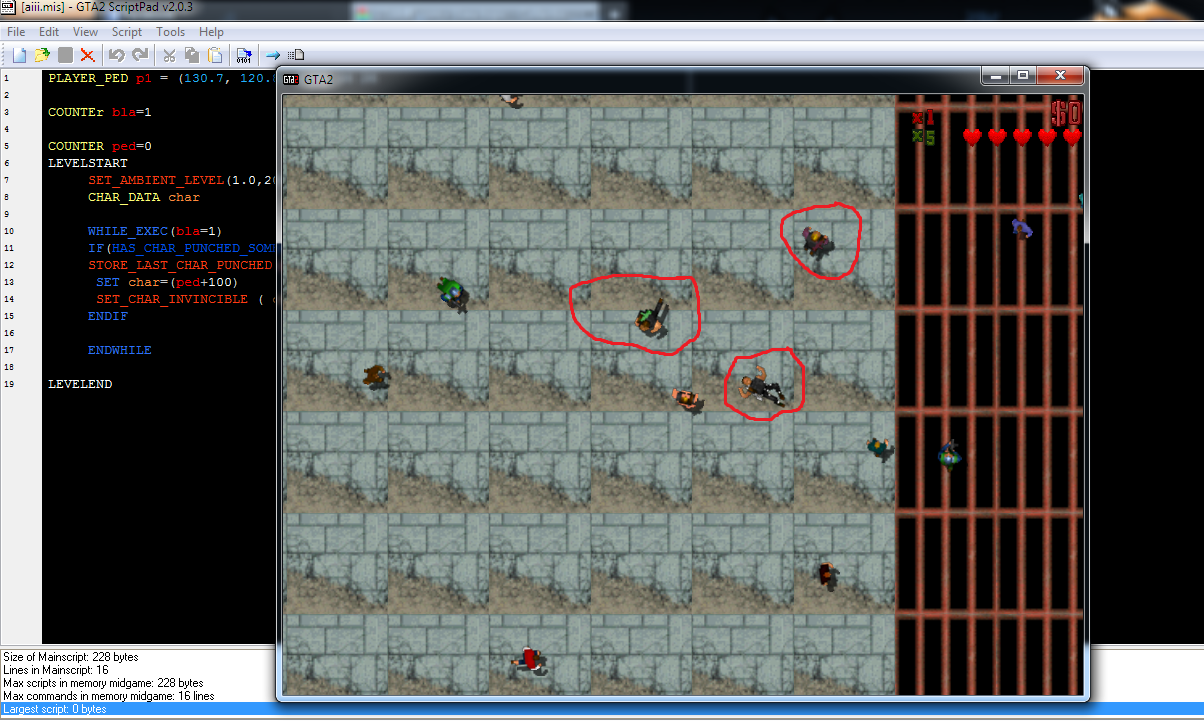 here is a screenshot. the marked peds have been punched by me and have obviously changed their remap. I used scriptpad with newest gta 2 version and running on win7. It looks like the peds become GANG_GRAPHIC instead of DUMMY_GRAPHIC.